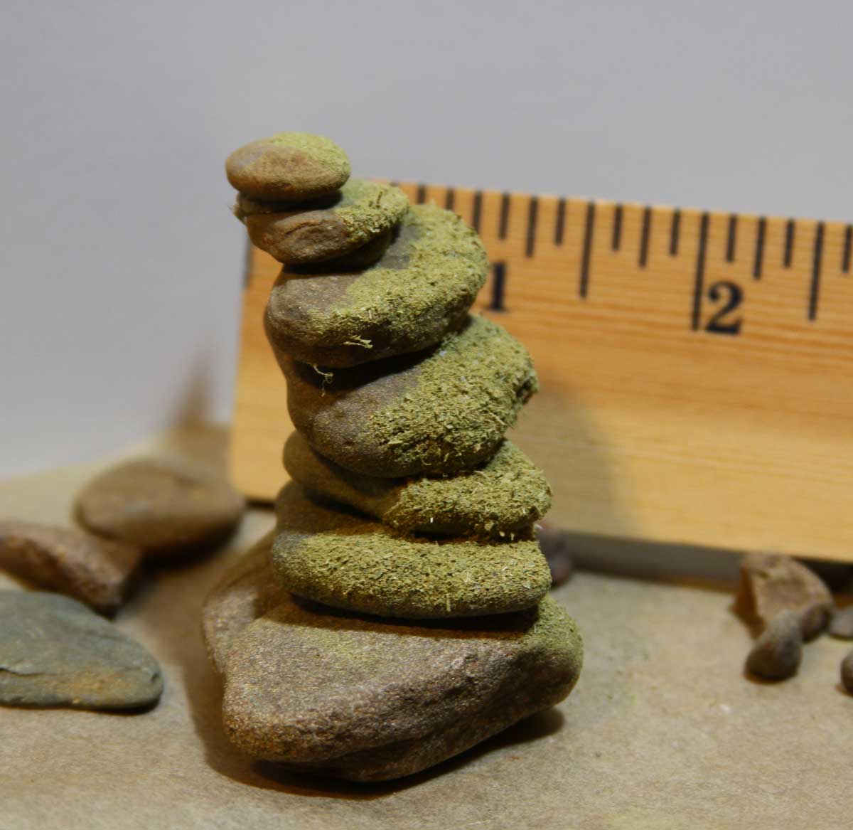 I gather the rocks from the creek here at Wild Ozark. If there’s a water feature, that’s made with a combination of hot glue gun and crayon shavings. Where a mossy look is added, it is actually powdered dried sassafras leaf or other green-colored herbs.
