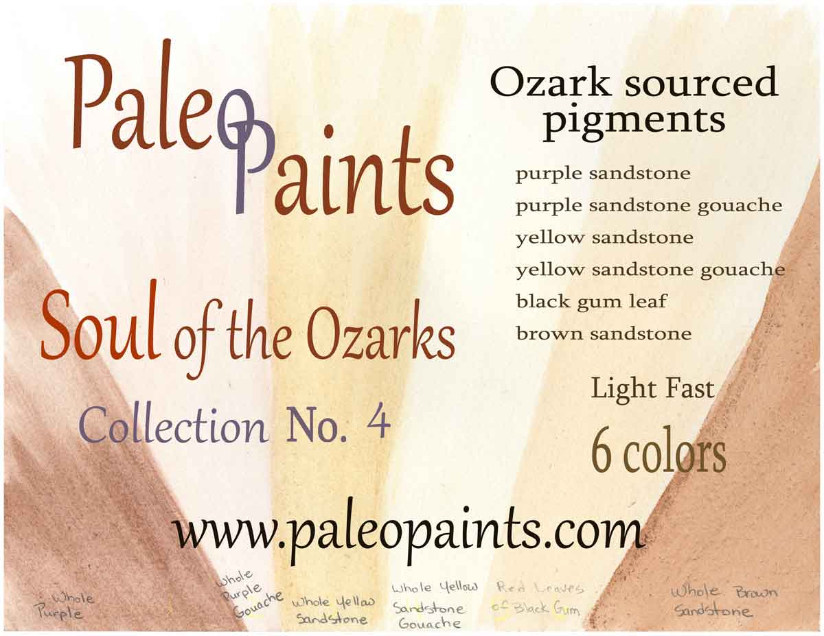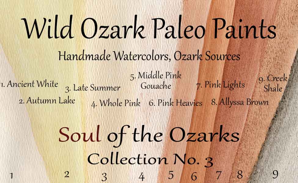 Since mid-November I’ve been busy busy working on wearing the artist’s hat. I’ve made a few new collections of Paleo Paints. You can read more about the latest collection at the art website (PaleoPaints.com) but here’s the cover images for all three so you can get an idea of the colors in each. No. 3 is at the Walton Arts Center’s little Holiday Market shop until Dec. 16. No. 4 still has one color not yet dry enough to ship so I bring it with me to sell in person but it should soon be ready to go up on Etsy, too. Collection No. 5 is listed at Etsy now, but there’s only two of those sets left.