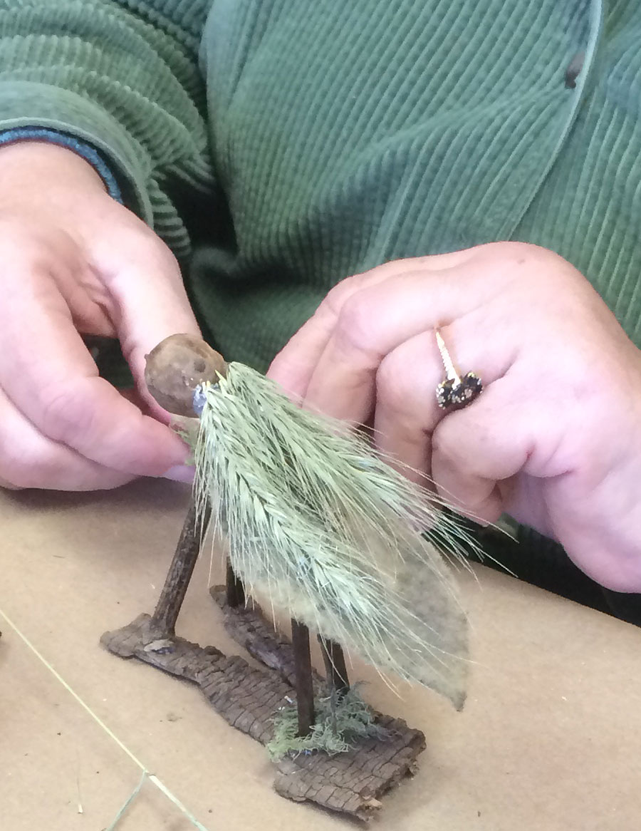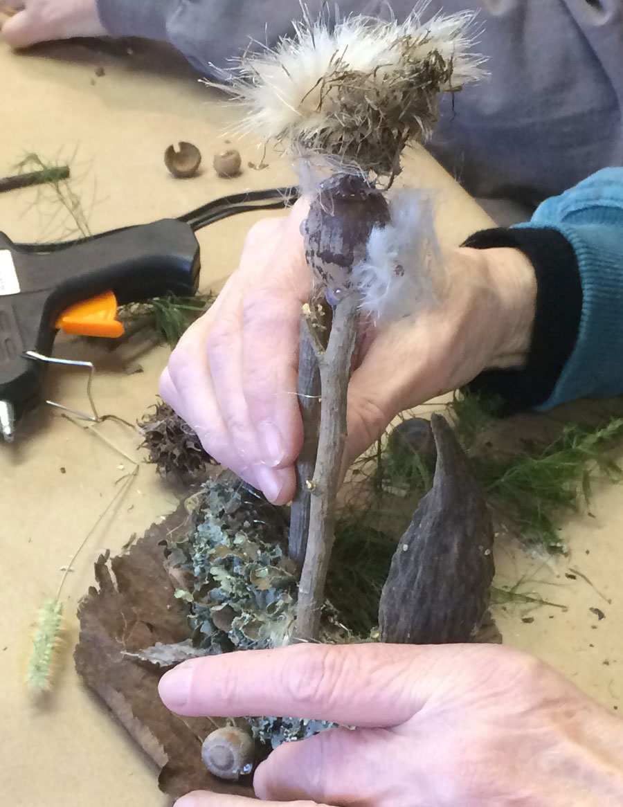 The workshop consists of people creating twig art with or without my assistance. My Forest Folk come with me for show and tell, and to inspire new works but participants can make whatever they want – and it doesn’t have to look just like mine. I’m there and ready to help or offer advice so participants can go home with a fabulous work of Forest Folk Nature Art.