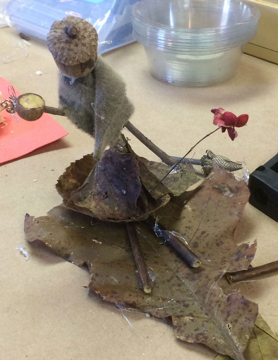 In a couple of hours there is a whole new civilization of Forest Folk on the table. Everyone goes home with a gorgeous hand-made work of nature art and I get to have a fun time making an artsy mess with some partners in crime!