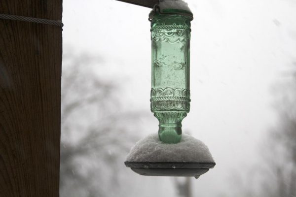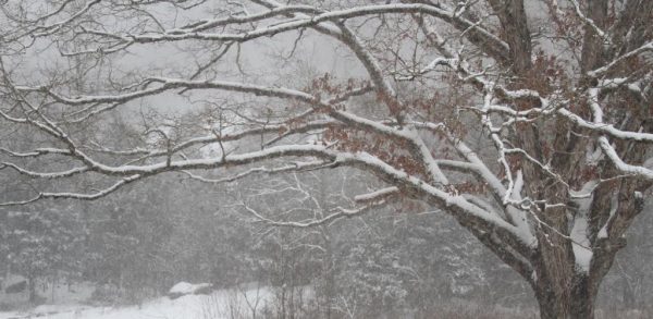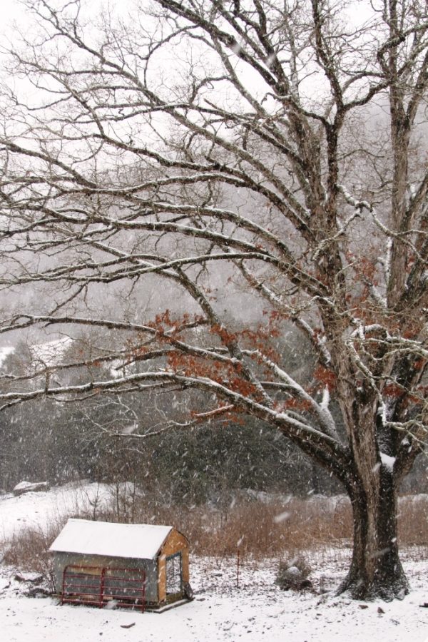 Traffic is always crazy when there’s snow in the Ozarks. We had to go into Fayetteville this morning. It was raining and I knew the colder weather was coming in, but we figured we should be able to get there and back before the roads started icing. Halfway there I noticed ice building up on the mirrors. Not a good sign. Soon the roads were covered with slippery sleet. Got the urgent errand done and had to take an alternate route home because the little car wouldn’t get up the big sleet covered hill. Finally reached our county road and made it across the low-water bridges with a few inches of water over them. Whew! What a trip. We only saw one vehicle in the ditch. Someone going to fast most likely.