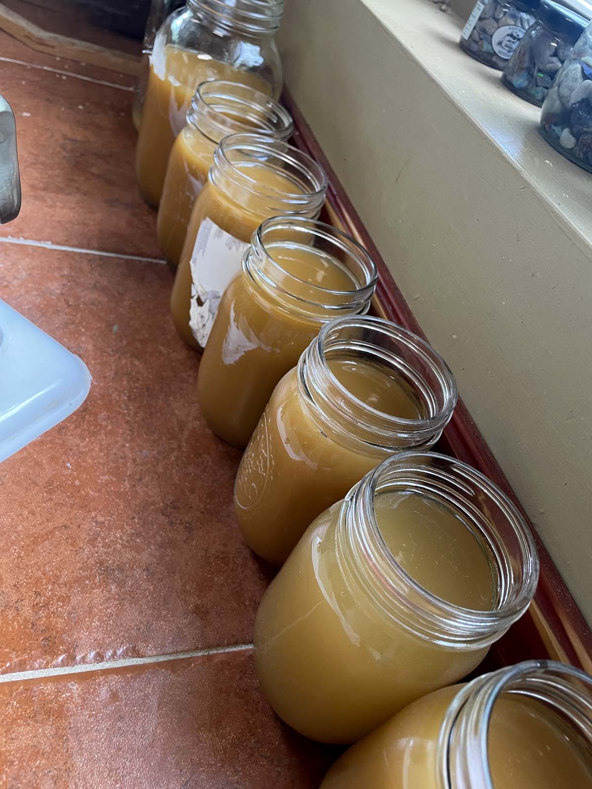Once there’s only a thin layer of water in the smaller jars, then I’ll put them into the dehydrator to hurry the process along a bit.